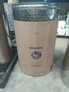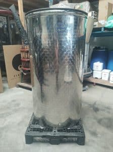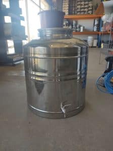 500L Sansone Stainless Steel Tank – complete with stainless steel dust lid only. No VC floating lid. Tank is slightly out of shape.