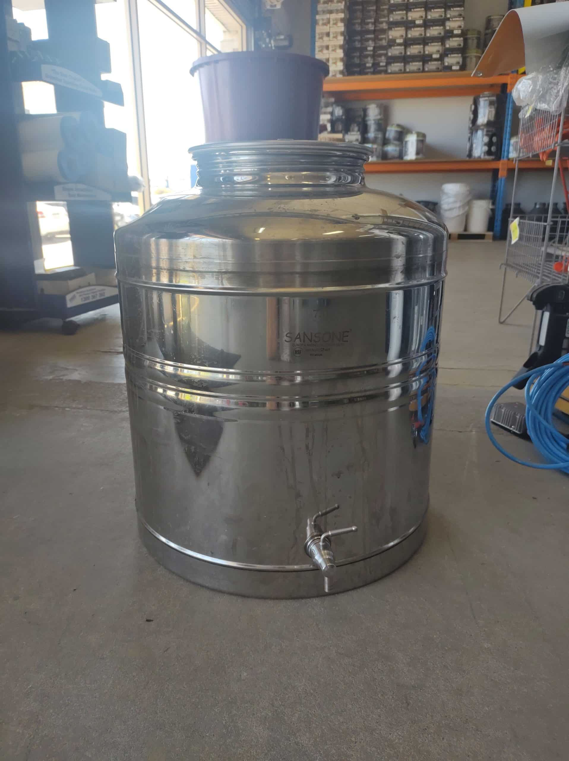 75L Sansone Stainless Steel Fusti/Olive Oil Container – two broken side handles. Still in good working order.